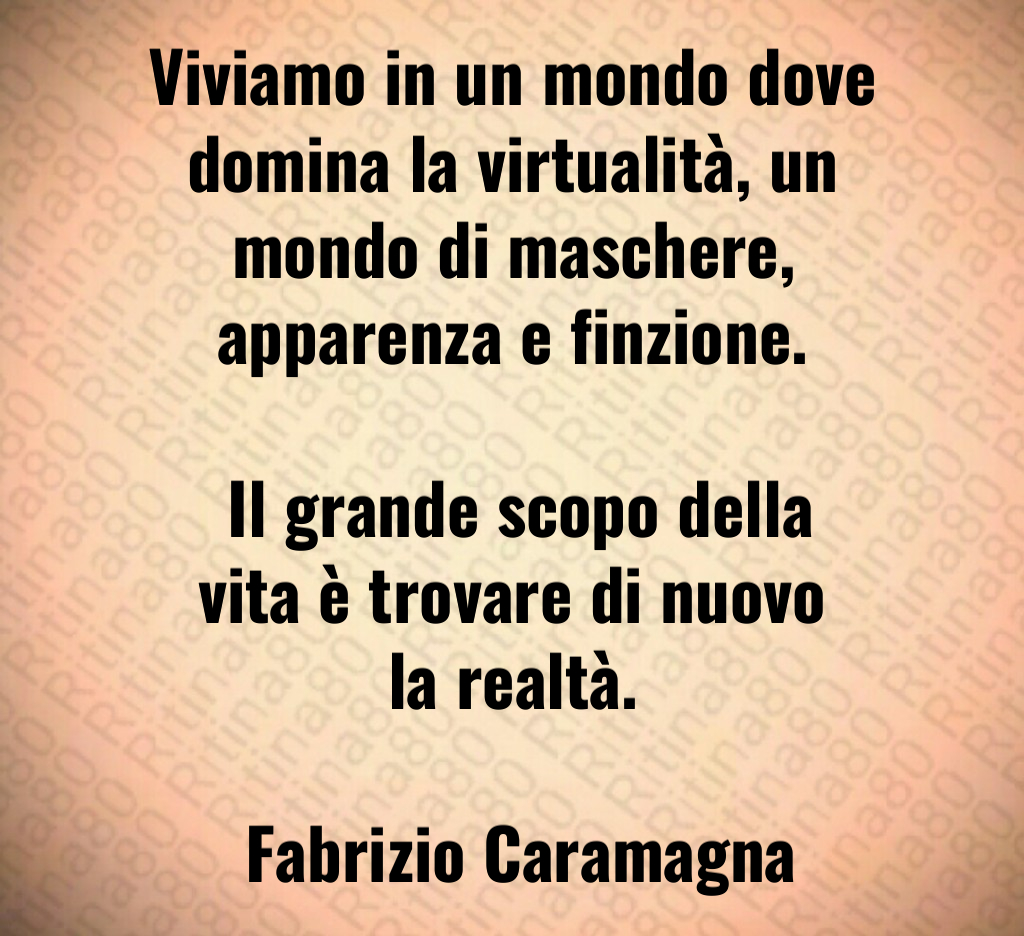 Viviamo in un mondo dove domina la virtualità un mondo di maschere apparenza e finzione Il grande scopo della vita è trovare di nuovo la realtà Fabrizio Caramagna